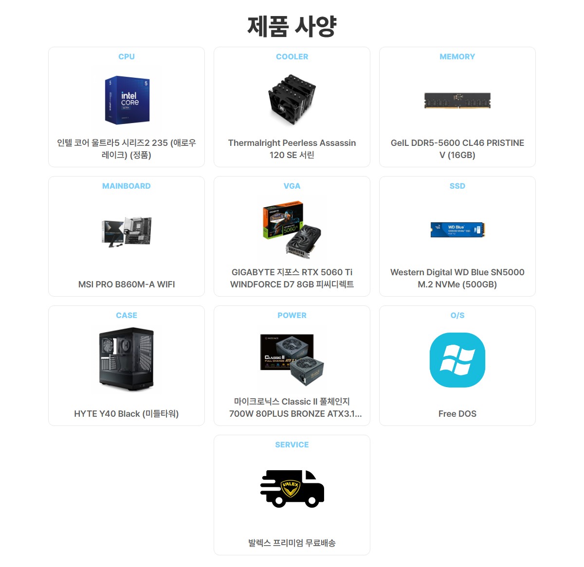 ÇØ´ç»óǰ(HYTE Y40 ºí·¢ ÀÎÅÚ 235 RTX 5060 Ti ÄÄÇ»ÅÍ)Àº ±¸¼º»óǰ¿¡ ǰÀý»óǰÀÌ Æ÷ÇԵǾîÀÖ½À´Ï´Ù. ǰÀý±¸¼º»óǰ º¯°æ½Ã ±¸¸Å °¡´ÉÇÕ´Ï´Ù. ǰÀý»óǰ Ä«Å×°í¸® ¸¦ º¯°æÇØÁÖ¼¼¿ä. ǰÀý»óǰ Ä«Å×°í¸®¸¦ º¯°æÇÒ ¼ö ¾ø´Â °æ¿ì´Â ±¸¸ÅÇÏ½Ç ¼ö ¾ø½À´Ï´Ù.
