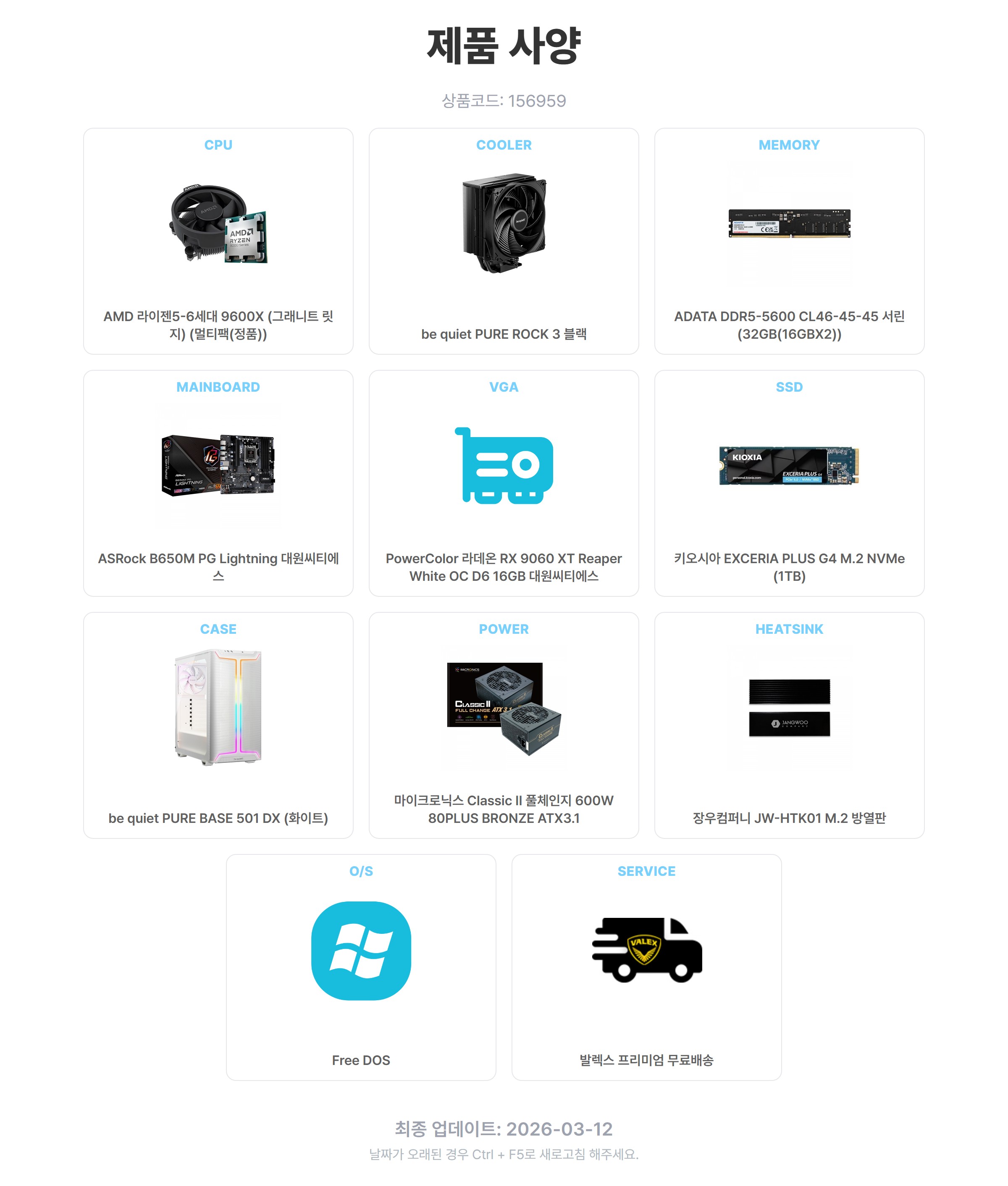 ±×·¡ÇÈÄ«µå PowerColor ¶óµ¥¿Â RX 9060 XT Reaper White OC D6 16GB ´ë¿ø¾¾Æ¼¿¡½º º¯°æºÒ°¡