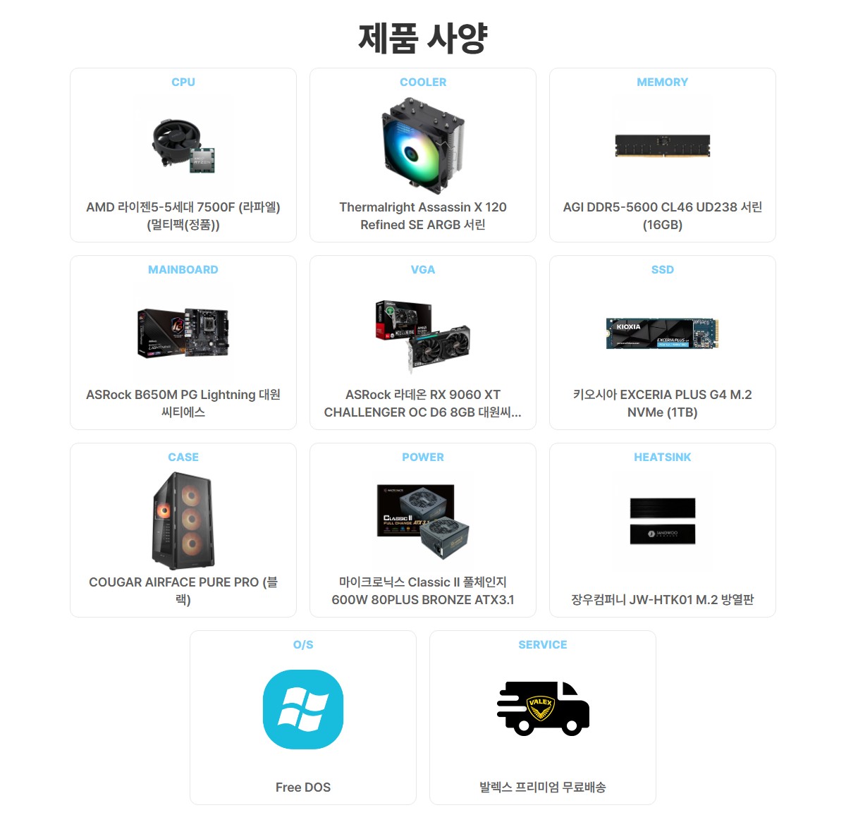 Äí°Å AIRFACE PURE PRO ºí·¢ 7500F RX 9060 XT ÄÄÇ»ÅÍ