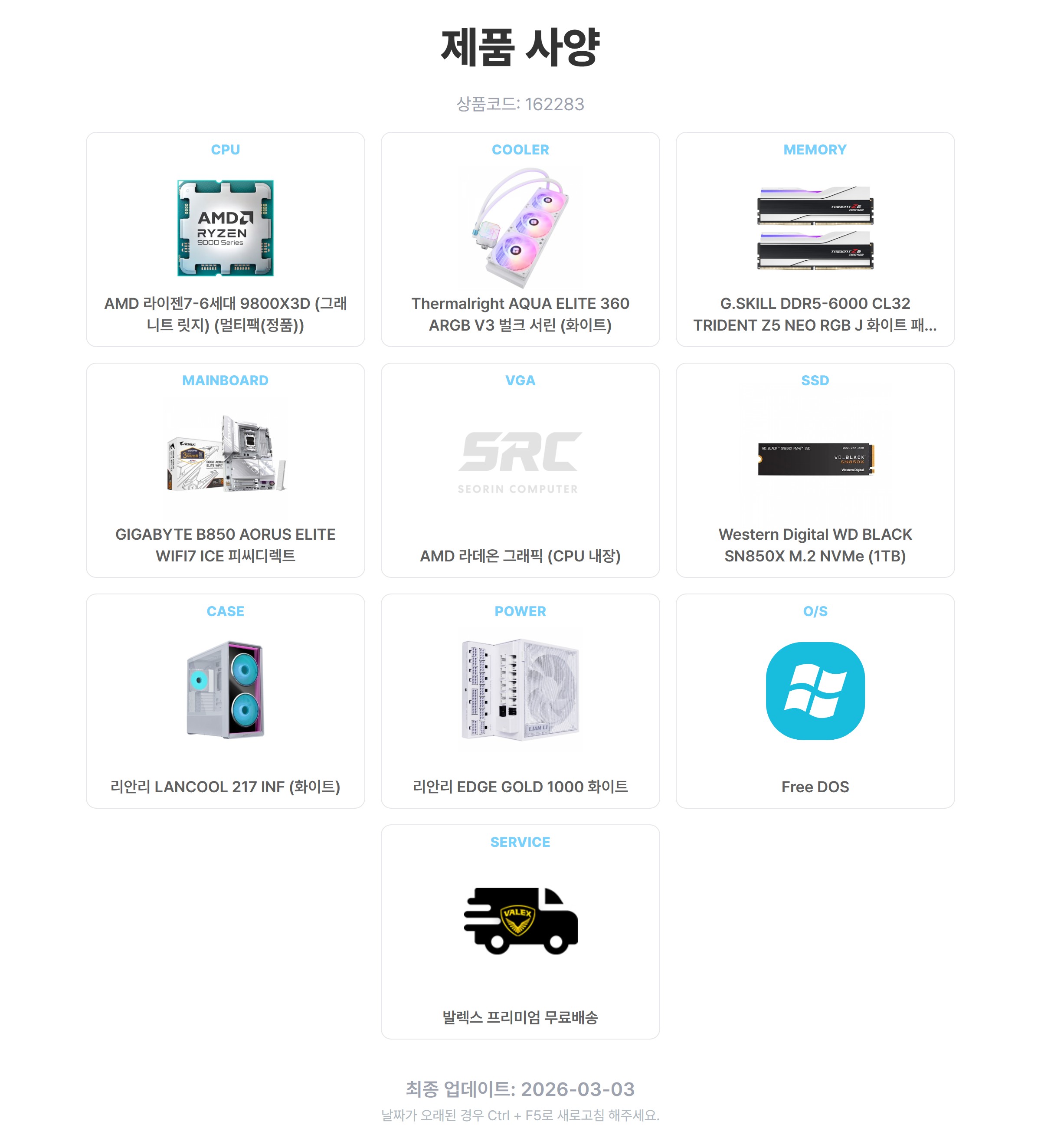 ¼­¸°ÄÄÇ»ÅÍ AMD 9800X3D_RAM 64GB_·£Äð 217 INF È­ÀÌÆ® ¹Ýº»Ã¼PC